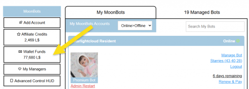 Your MoonBots wallet is used to pay for your bot subscriptions.