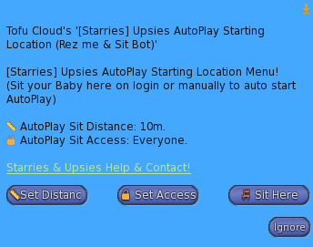 You can also click the star in-world to Set Distance, Set Access, and Sit Baby.
