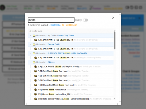 Viewer-Style Inventory Search - Inventory searching now feels much closer to the in-world viewer experience. You can browse with folder navigation, making it easier to find items quickly without digging through clutter.