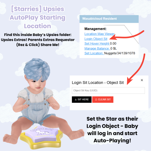Rez and copy the Object UUID, and paste it under Login Sit Location. You can use the same star for multiple babies.